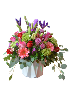 Arreglo floral primaveral en tonos festivos, para alegrar el alma.