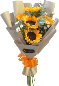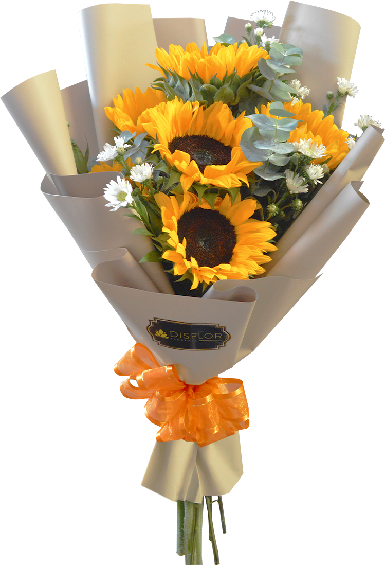 Encantador bouquet de 6 girasoles. -El color del papel y el listón pueden variar.