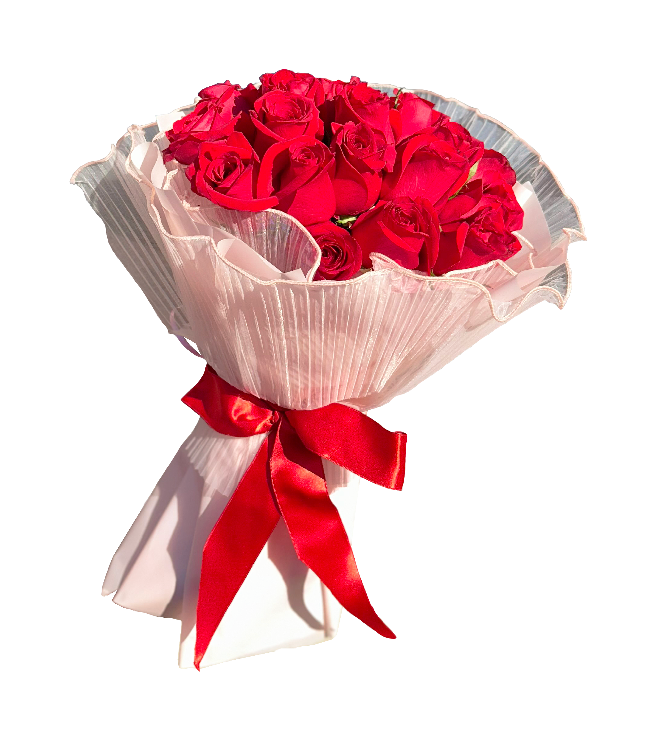Bouquet en base de 18 rosas rojas.