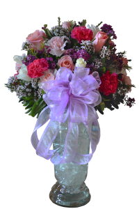 Florero de rosas y claveles ideal para colocar en algún evento especial gracias a su diseño elegante y distinguido.