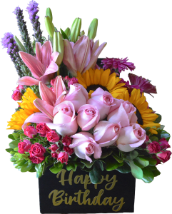 Este arreglo es perfecto para regalar en cumpleaños. -Follaje, relleno y color de las flores pueden variar de acuerdo a la disponibilidad. -Tamaño mediano.