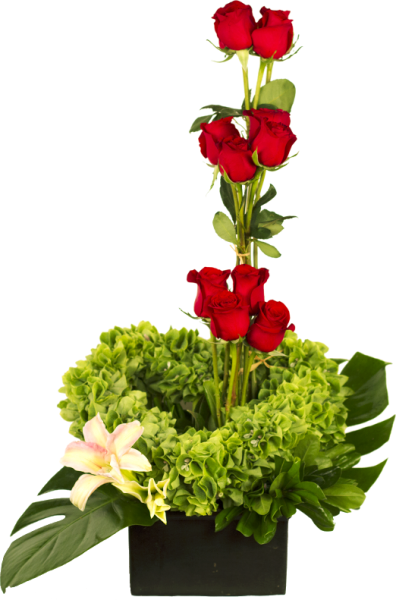 Exclusivo diseño de rosas con un corazón de follaje. Uno de nuestros diseños más románticos.