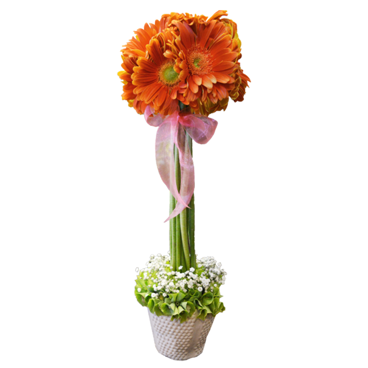 Topiario de gerberas en base de barro, cristal o madera, lindo detalle para festejarle.